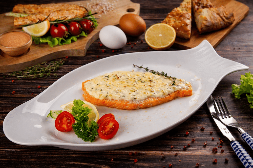 Семга, запеченная под лимонным майонезом