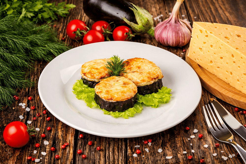 Баклажаны, запеченные с помидорами и сыром