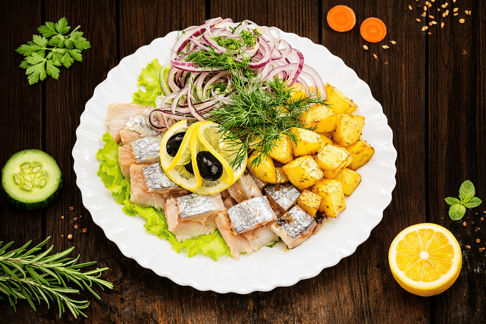 Сельдь по- русски с картофелем и луком