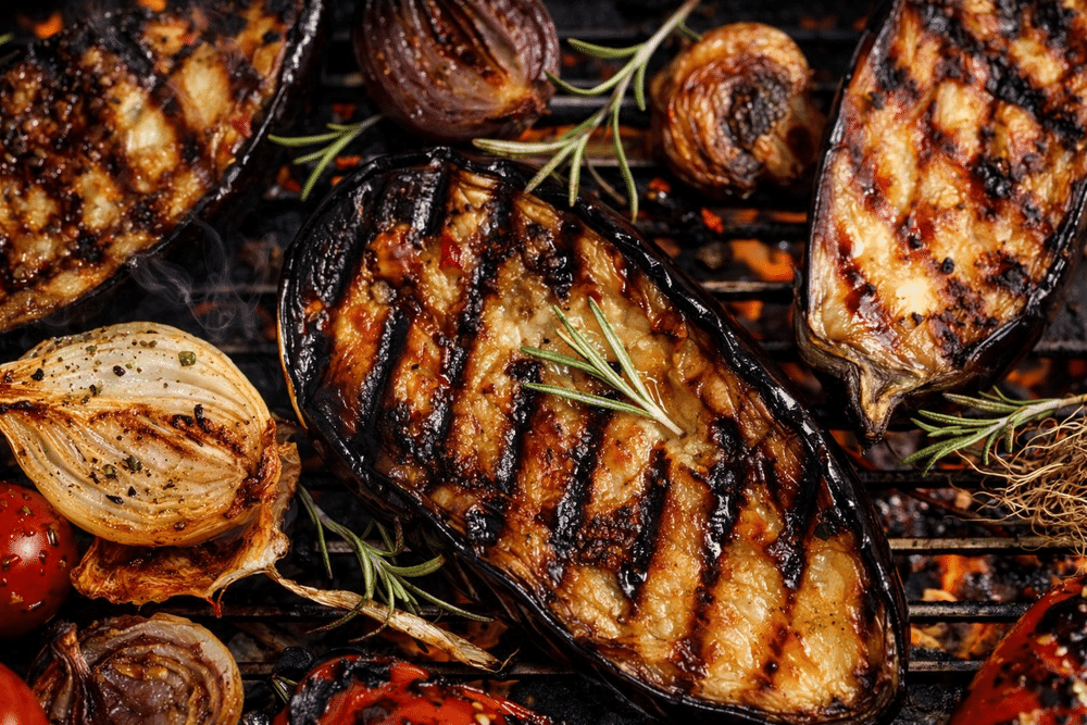 Баклажаны на гриле — мягкие внутри, с румяной корочкой.