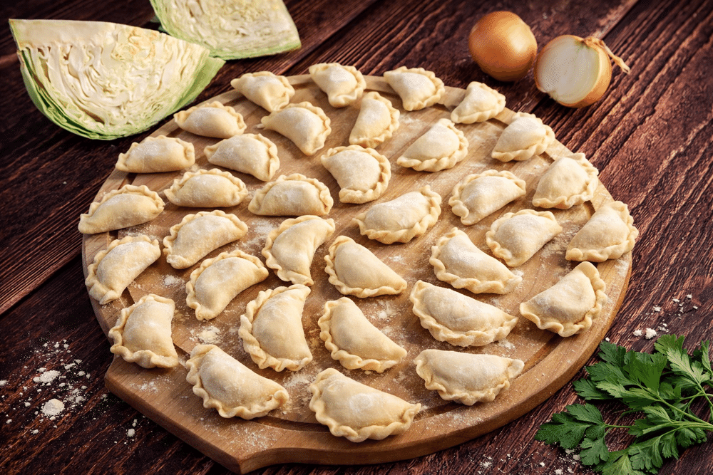 Вареники с сочной капустной начинкой ручной лепки — замороженные, готовые к варке. Сытно, по-деревенски, с душой.