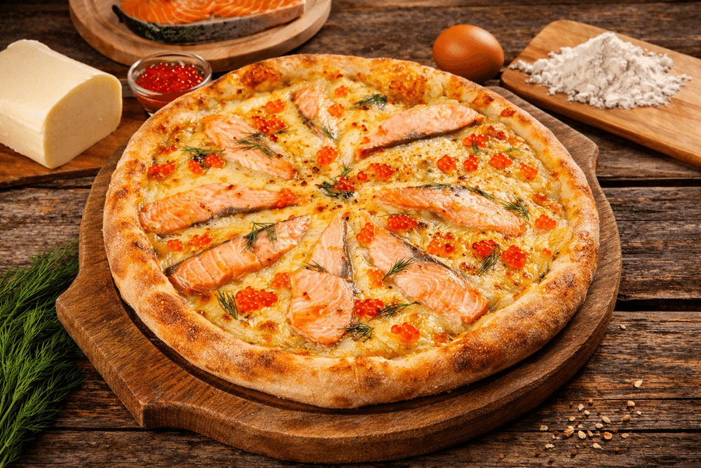 Пицца Царская с лососем и икрой